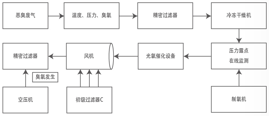 VOC有機(jī)廢氣處理的成套設(shè)備包括順序連接的等離子體和光氧催化反應(yīng)設(shè)備。其特點(diǎn)是等離子體催化器將等離子體技術(shù)與催化劑原位式結(jié)合,將特制的催化劑放置在等離子體產(chǎn)生區(qū)域內(nèi)。等離子體在催化劑上原位產(chǎn)生,可將催化劑和放電緊密結(jié)合,高效降解VOCs。此研發(fā)的催化劑和設(shè)備均已獲得國(guó)家專利各一項(xiàng)。單獨(dú)使用等離子體設(shè)備副產(chǎn)物O3和NOx比較多,因此將光氧催化設(shè)備置于等離子體設(shè)備的后面,經(jīng) 臭氧氧化、紫外光解與光催化氧化繼續(xù)降解有機(jī)物及副產(chǎn)物。此套設(shè)備可以大大優(yōu)化廢氣處理效率,對(duì)VOCs的去除率能達(dá)到90%。